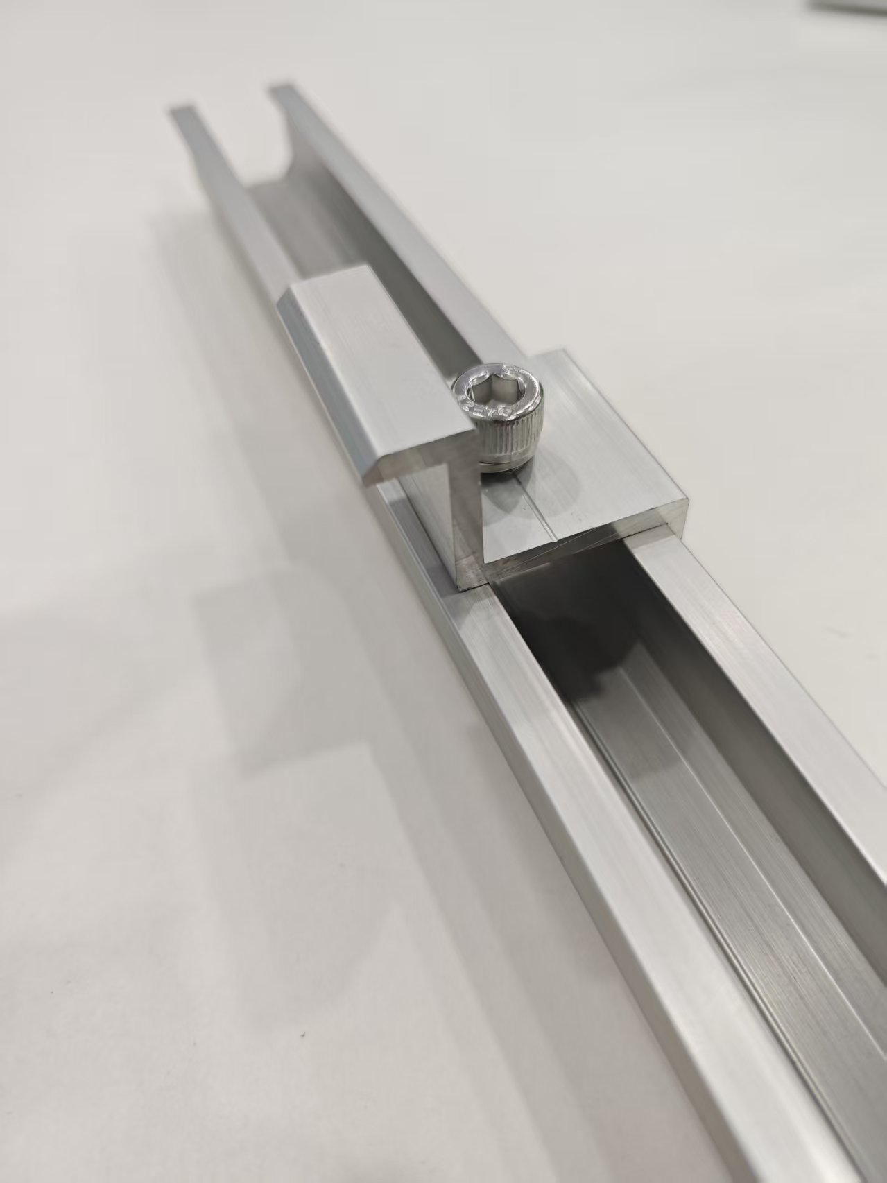 Tá fad Mini Rails Alúmanam Gréine i bhfad níos giorra ná ráillí caighdeánacha, mar sin an t-ainm mion-iarnród. Deartha go sonrach do chórais gléasta fótavoltach díon, tá sé thar a bheith éadrom, rud a laghdaíonn go mór an brú ar struchtúr an dín. Ceadaíonn a dhearadh U-chruthach uathúil painéil fhótavoltach a dhaingniú ar an iarnród gan ach clamp deiridh nó clamp lár, rud a fhágann go bhfuil an suiteáil thar a bheith simplí agus a ghiorrú go suntasach amlínte an tionscadail.